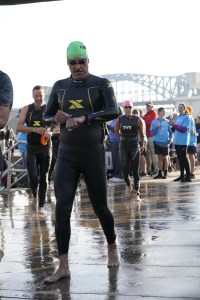 As the buoys turned from yellow to orange at the halfway point, I found myself getting closer to them and eventually looked up to find them on my right side for the first time. I got past the island in the middle of the river and the three bridges were dead ahead. The next thing I knew I rounded the red turn buoy and swam to the ladder, and that’s when I glanced at my watch – 59 minutes. That’s insane. I know that this course could give me a quick swim, but never in my life did I think I could swim 2.4 miles in under an hour. 00:59:43 officially. A swim PR for me.