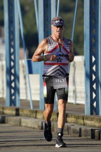 As I got over the bridge I was forced to run through a gauntlet of fans that crowd the run course and one guy got an extended evil eye from me and got out of my way. I ran down the hill and turned onto the road to finish. As I approached the finish chute I kept checking in front and behind me to have a good finish for myself and things were looking good. But all at once this dope comes screaming past me and spoils my finish. And to add to that disappointment, the announcer didn’t even call me in! WTF? Oh well, it’s not my first Ironman finish, and it probably won’t be my last. But the photos still prove that I had a great race.